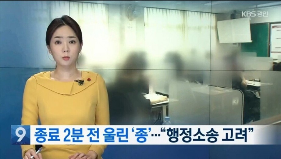 모든 교실에 시험 종료 종이 울림. 수험생들은 2분 일찍 시험을 끝내야 했음