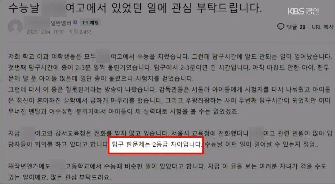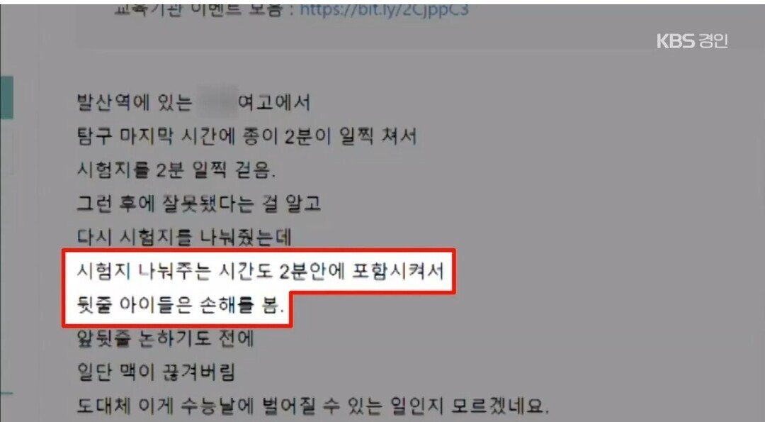 하지만 수험생들은 이런 혼란스러운 상황에 제대로 문제를 풀 수 없었고