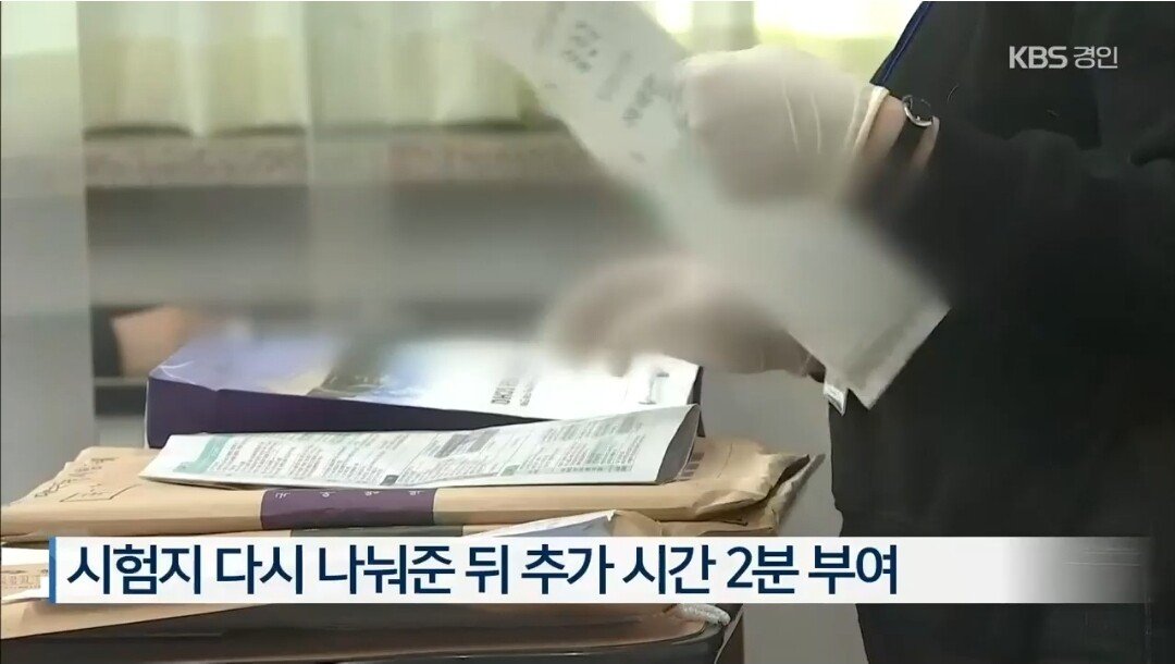 -> 시험지 다시 나눠준 뒤, 추가로 시험시간 2분을 더 줌