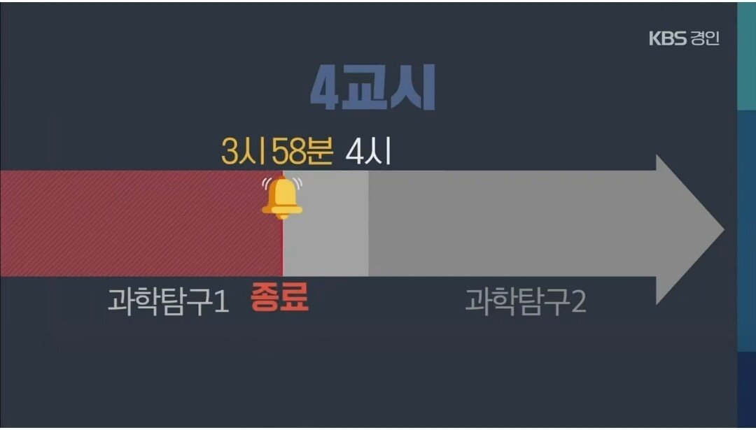 과학탐구 첫번째 시험이 끝난다는 종이 2분 더 빨리 울림