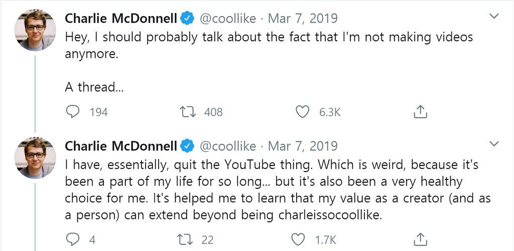 자신이 만들어낸 '유튜버 찰리'라는 페르소나에 갇혀서 더욱 힘들었으며